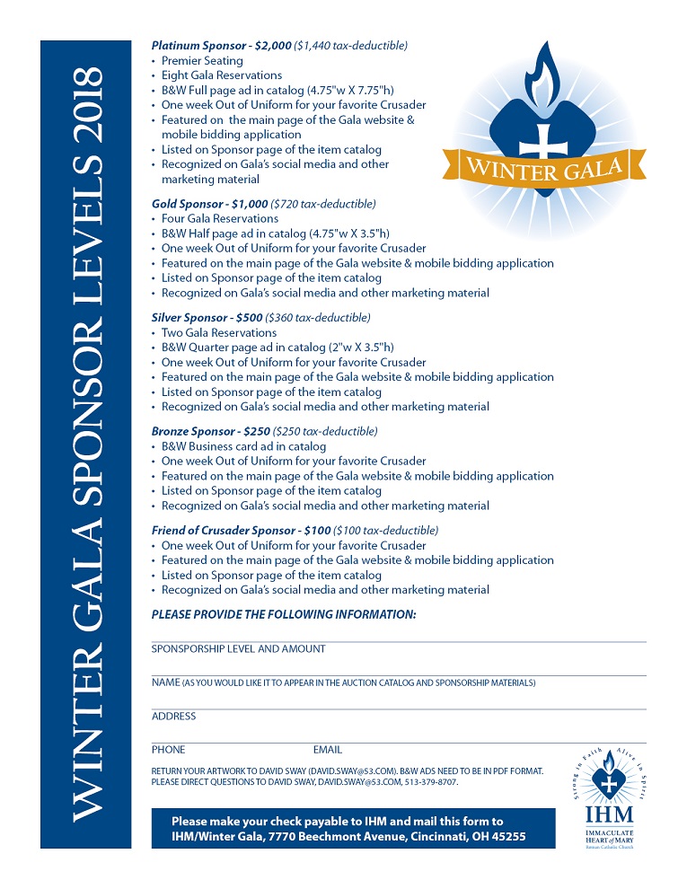 The deadline to submit sponsorships and to receive full promotional benefits (including recognition in our program) is January 15, 2018